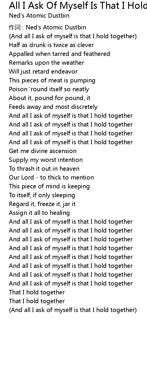 | Song | All I Ask Of Myself Is That I Hold Together |