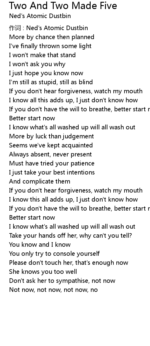 | 作词 : Ned's Atomic Dustbin | |