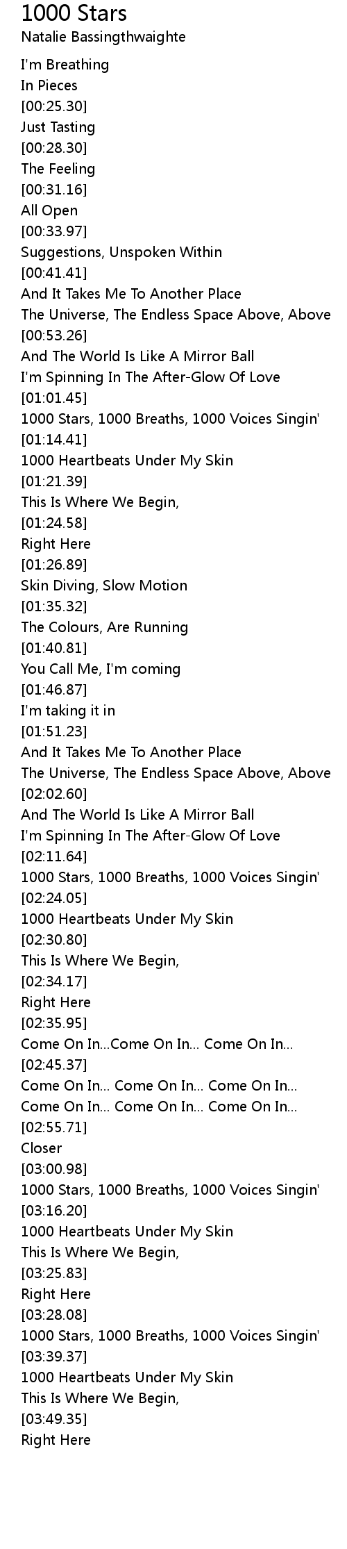 [03:06.29] 1000 Stars, 1000 Breaths, 1000 Voices Singin'
