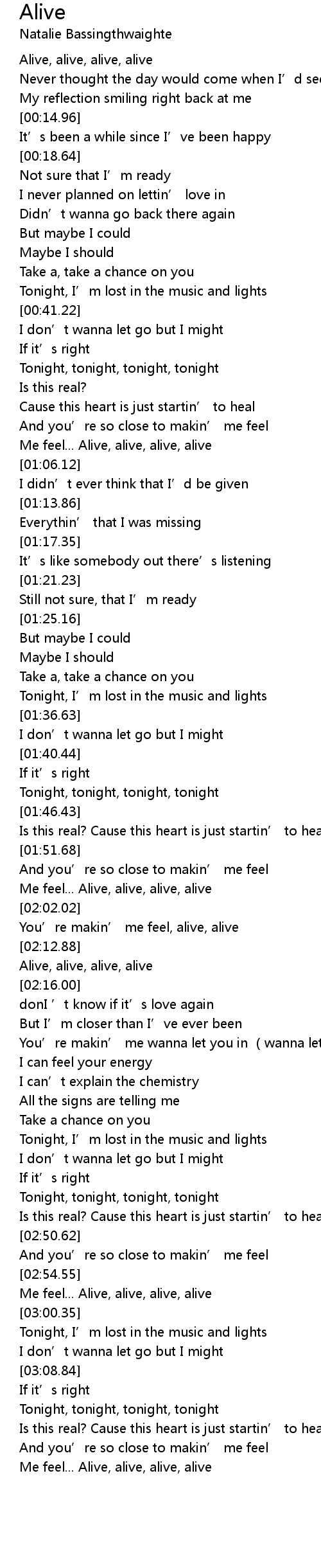 | [01:55.86] | Me feel... Alive, alive, alive, alive |