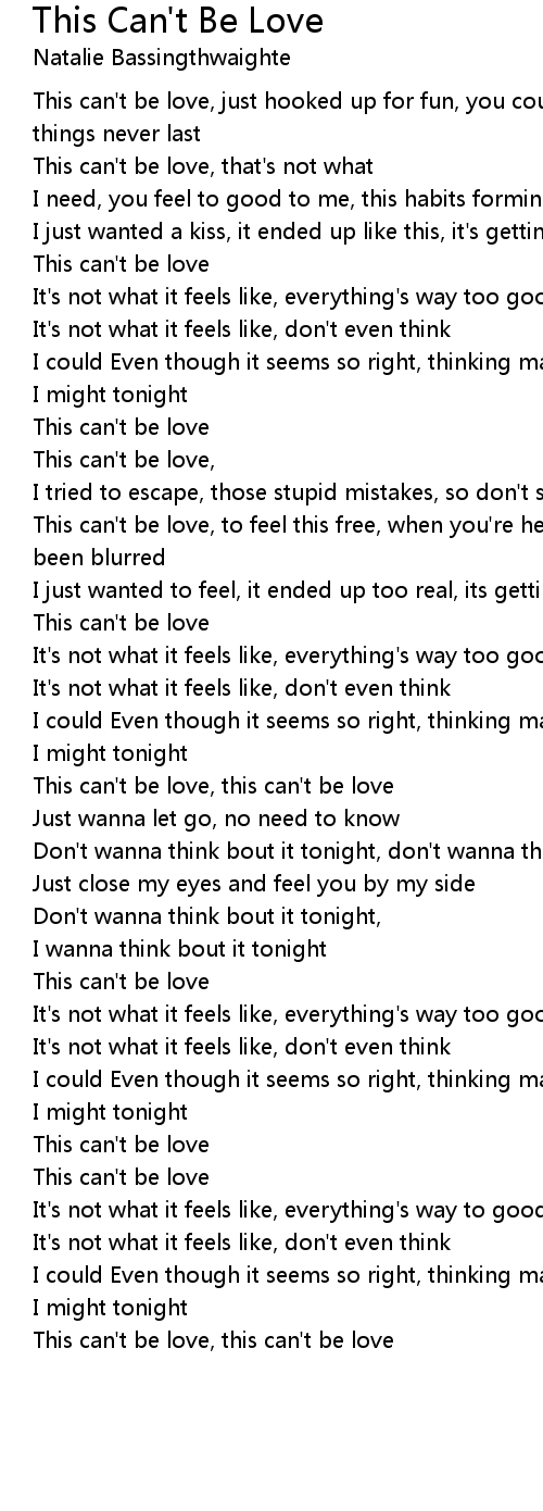 This can't be love, to feel this free, when you're here with me, everything's been blurred