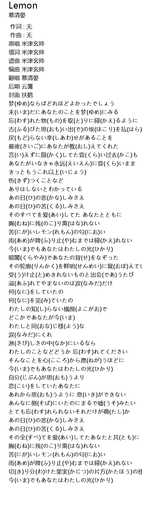 | [03:44.349] | 苦(にが)いレモン(れもん)の匂(にお)い |