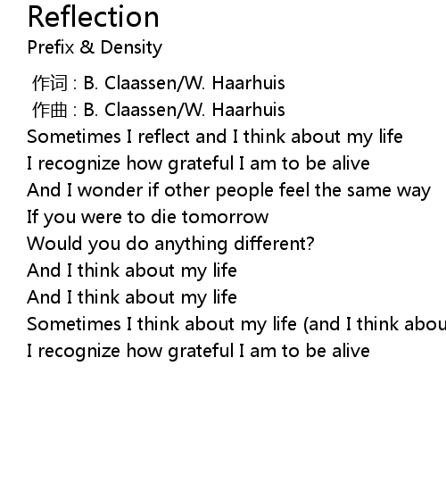 | [00:00.890] | Sometimes I reflect and I think about my life |