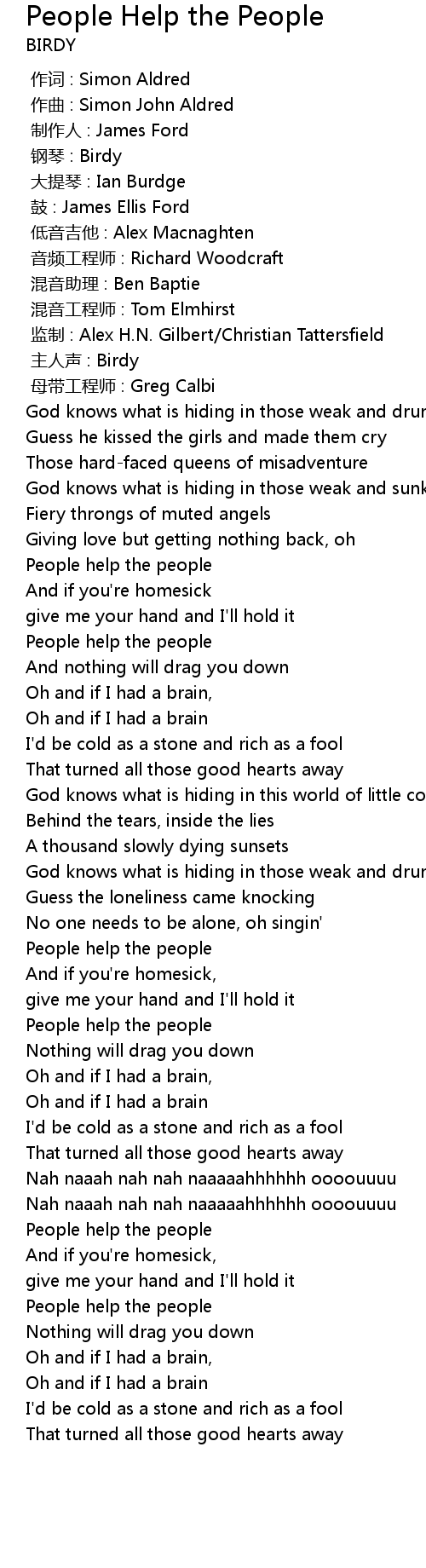 | [02:15.77] | People help the people |