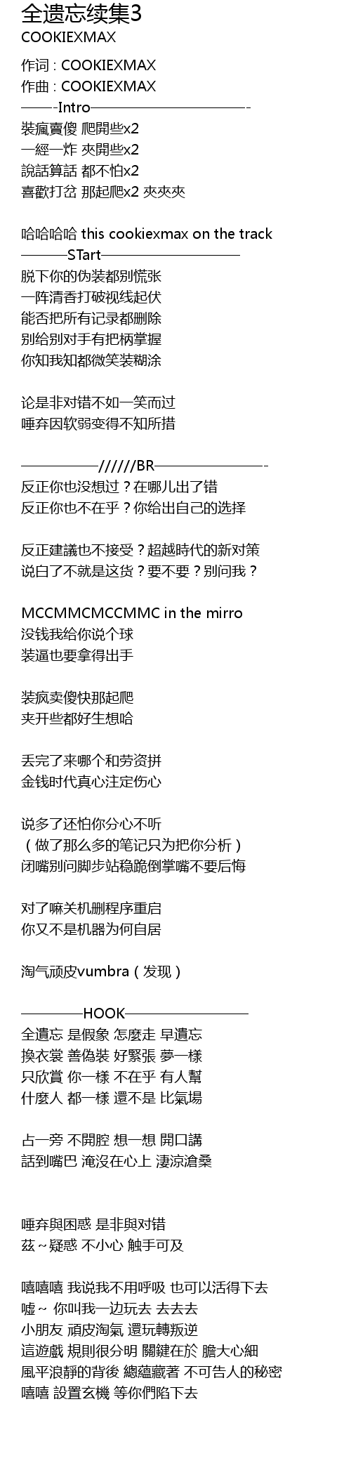 | 作词 : COOKIEXMAX | |