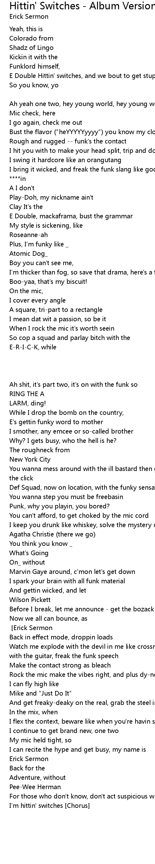 I'm hittin' switches [Chorus] [Erick Sermon] (Switch) |