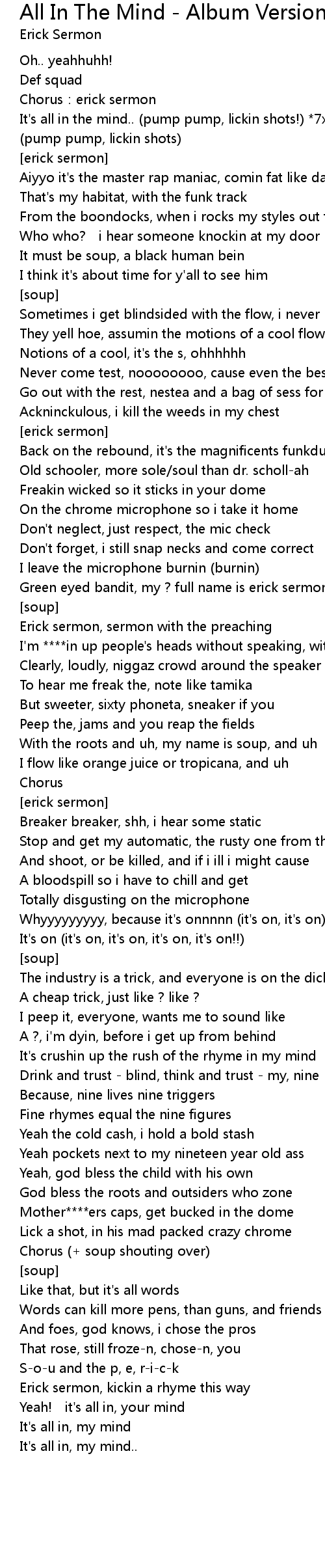 | It's all in the mind.. (pump pump, lickin shots!) *7x* | |