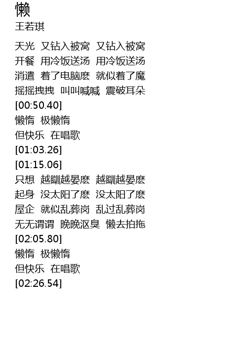 | [02:06.41] | lǎn duò jí lǎn duò |