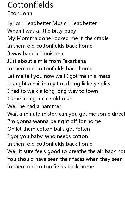 | Song | Cottonfields |