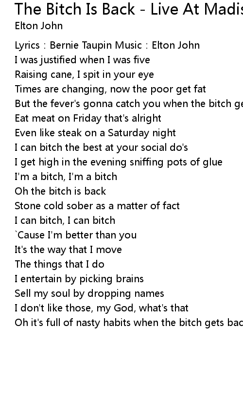 | Song | The Bitch Is Back - Live At Madison Square Garden |