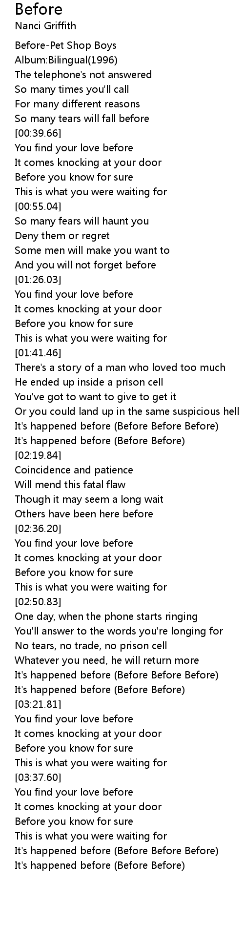 It's happened before (Before Before) |