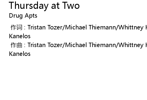 | [00:00.000] | 作曲 : Tristan Tozer/Michael Thiemann/Whittney Kebschull/Matt Kanelos |