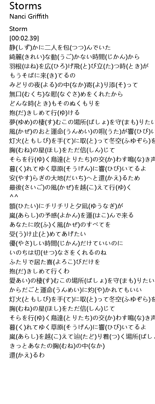 | [00:40.58] | みどりの夜(よる)の中(なか)寄(よ)り添(そ)って |
