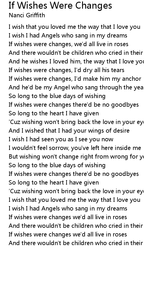 If wishes were changes there'd be no goodbyes |