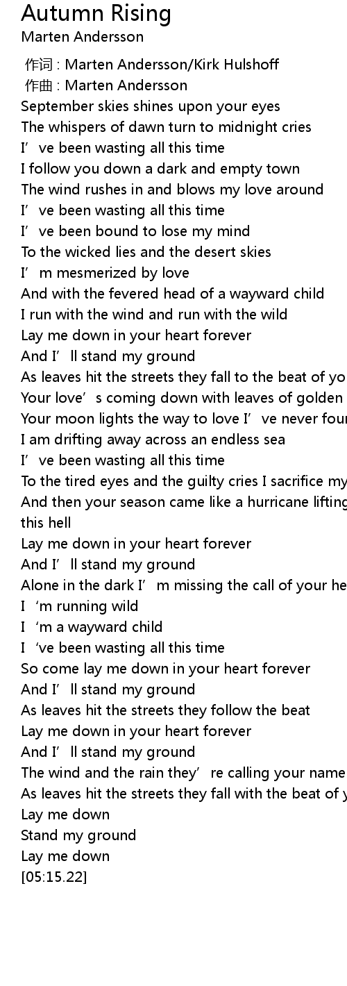 | [04:50.31] | As leaves hit the streets they fall with the beat of your heart |