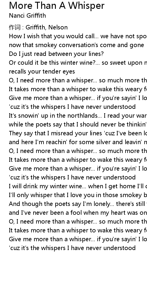 | Song | More Than A Whisper |