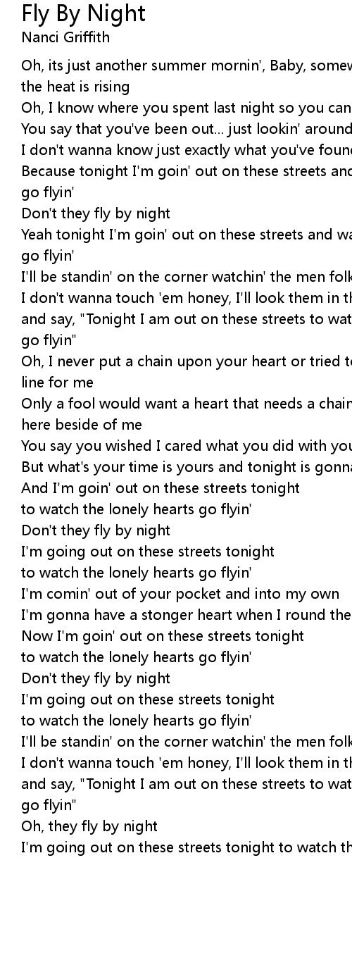 I'm going out on these streets tonight to watch the lonely hearts go flyin' |