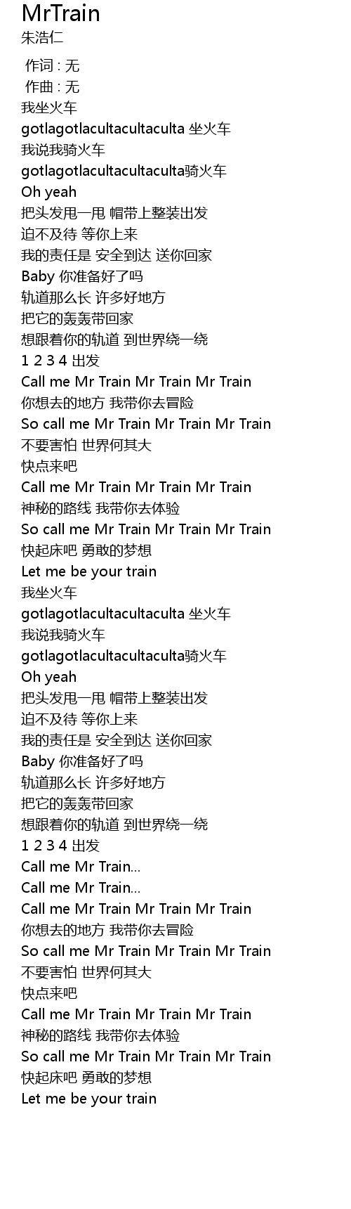 | [02:50.450] | Call me Mr Train Mr Train Mr Train |