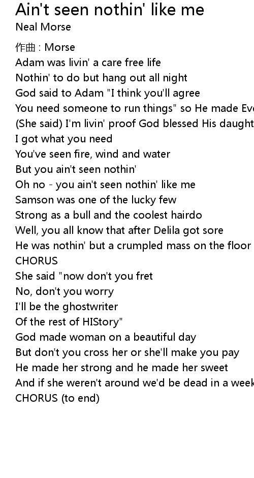 | Oh no you ain' t seen nothin' like me | |