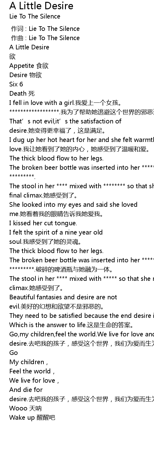 | [00:00.000] | zuo ci : Lie To The Silence |