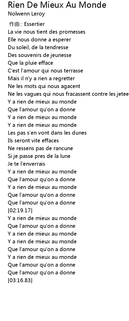 | [00:53.32] | Mais il n'y a rien a regretter |