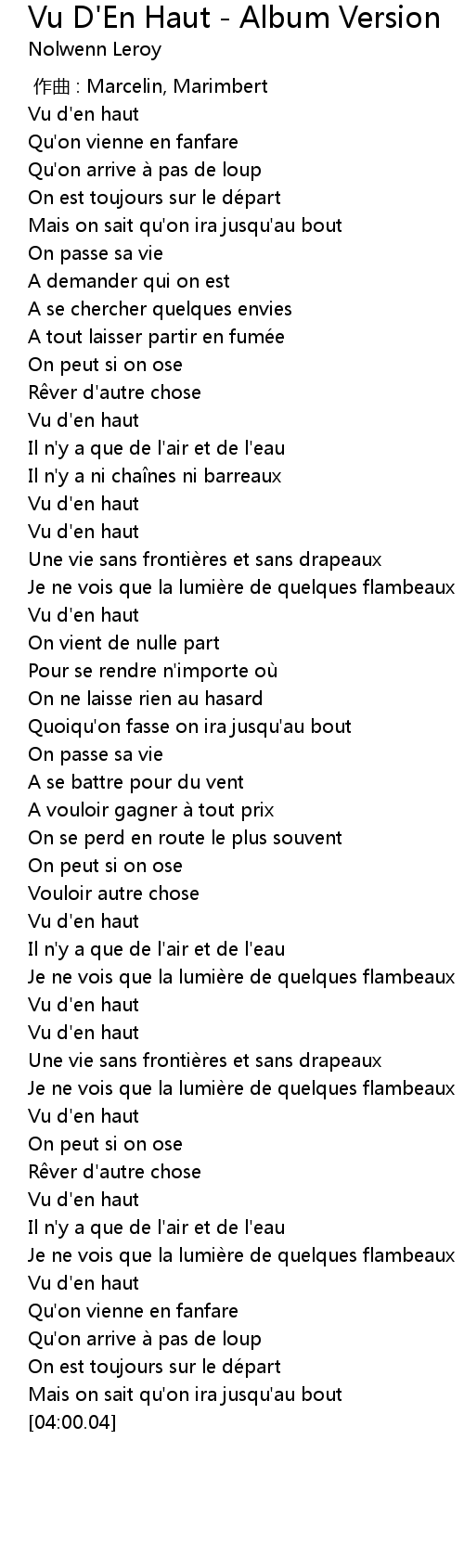 | [02:38.57] | Une vie sans frontie res et sans drapeaux |