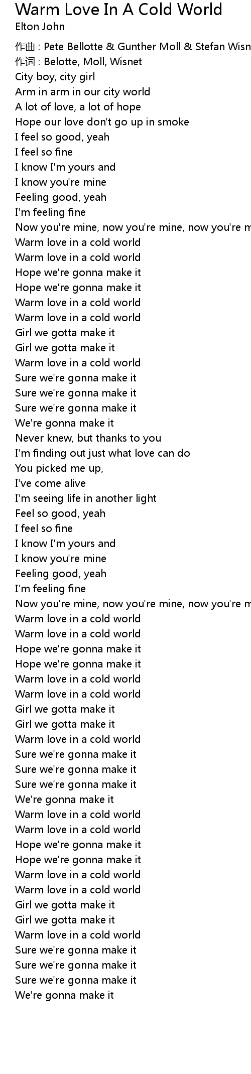 | Song | Warm Love In A Cold World |