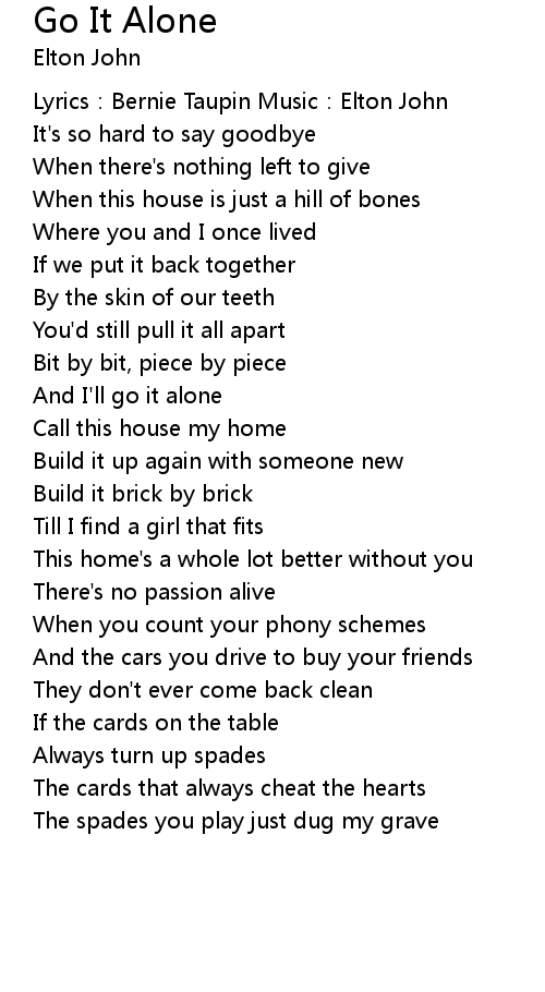 | Lyrics: Bernie Taupin Music: Elton John | |