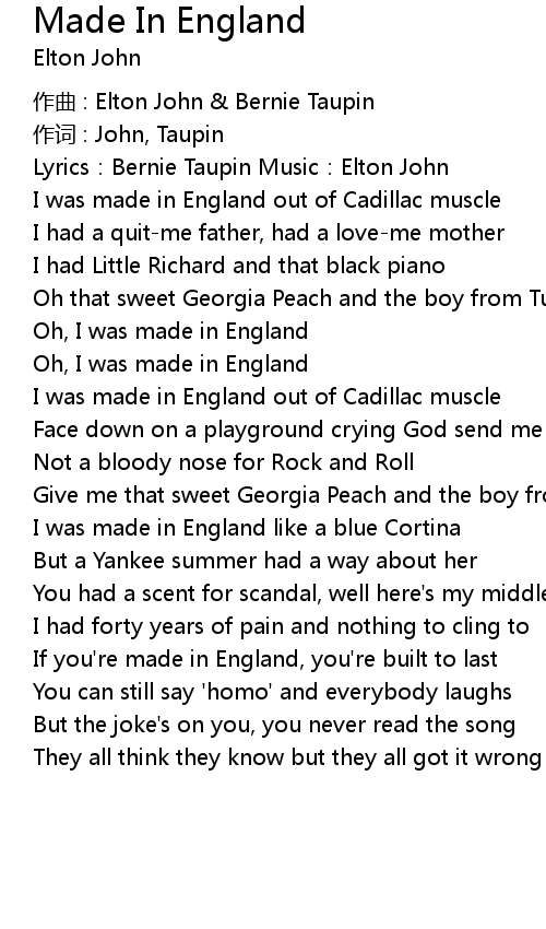 | Lyrics:Bernie Taupin Music:Elton John | |