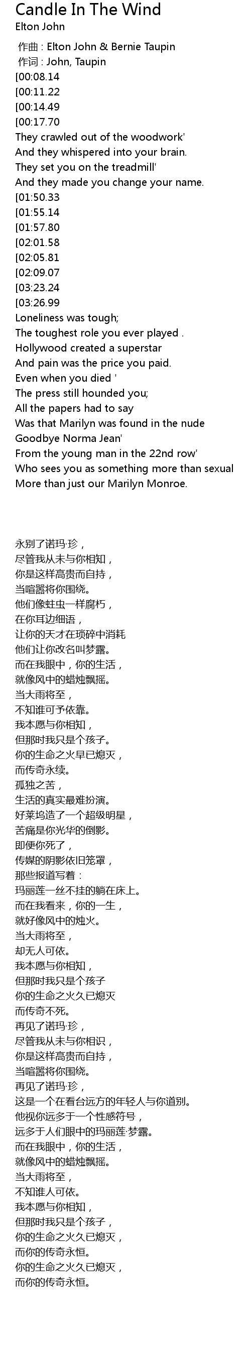 | [00:00.00] | 作曲 : Elton John & Bernie Taupin |
