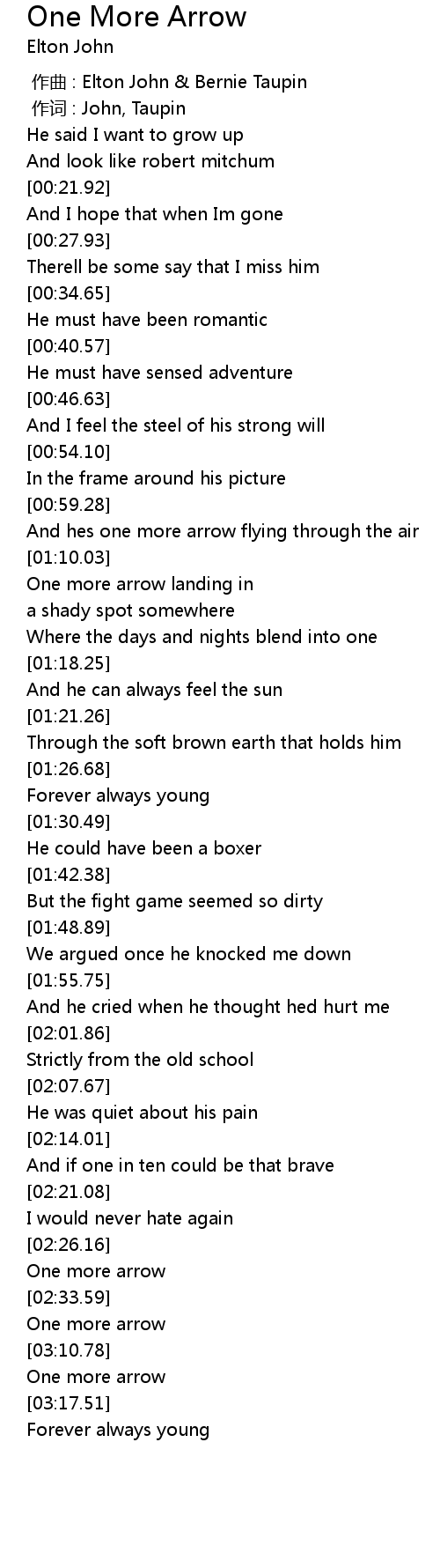 | [00:00.00] | 作曲 : Elton John & Bernie Taupin |