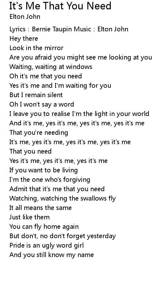 | Oh it' s me that you need | |