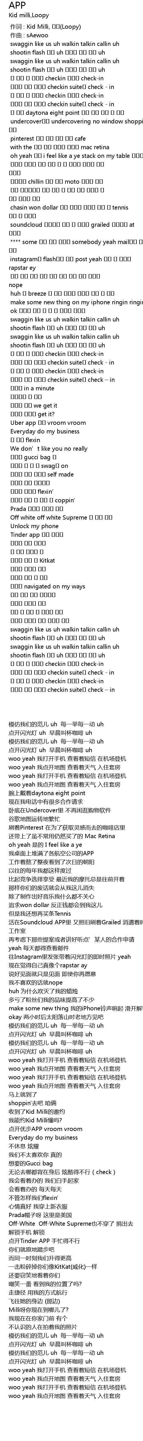 | [00:00.000] | zuò cí : Kid Milli, Loopy |