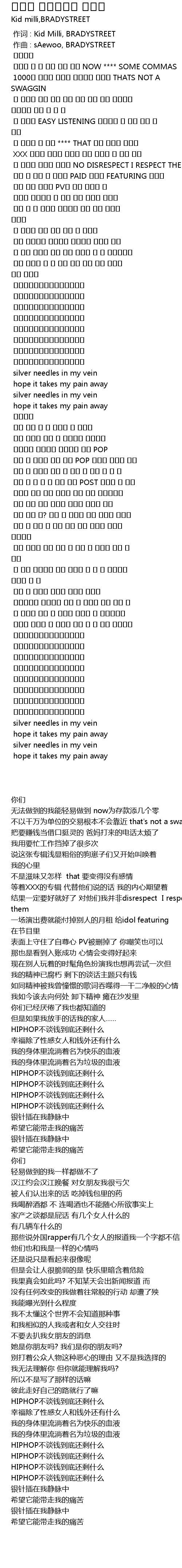 | [00:00.000] | 作词 : Kid Milli, BRADYSTREET |