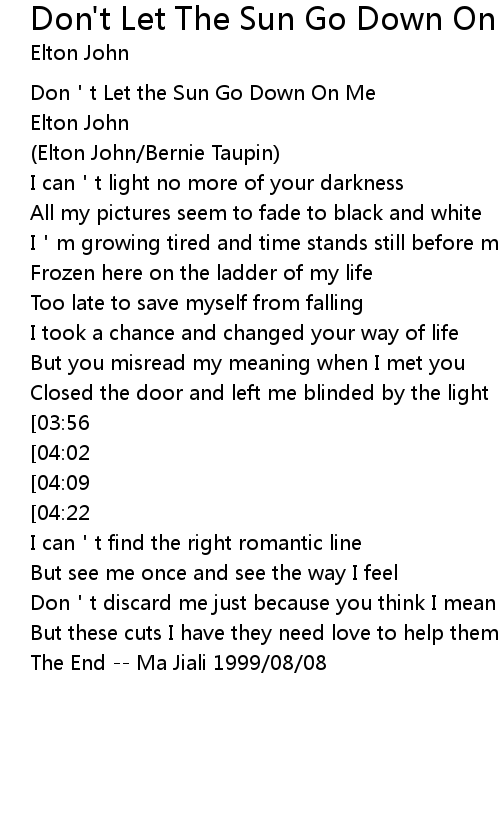 | [04:44][03:56][02:11] | Don't let the sun go down on me |
