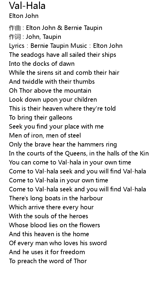 | Come to Val-hala in your own time | |