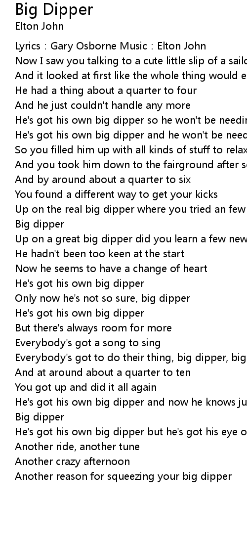 | Everybody's got to do their thing, big dipper, big dipper | |