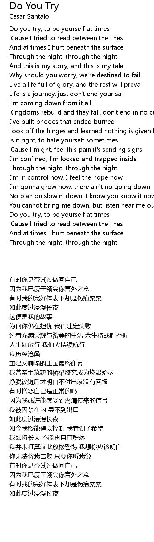 'Cause I tried to read between the lines |