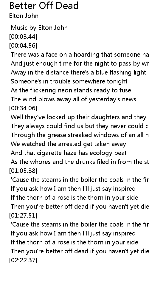 Then you're better off dead if you haven't yet died |