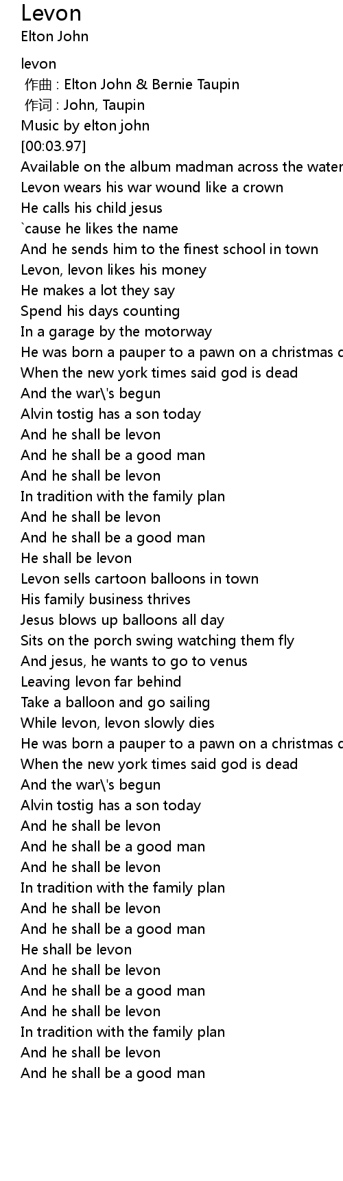 | [00:42.49] | Levon, levon likes his money |