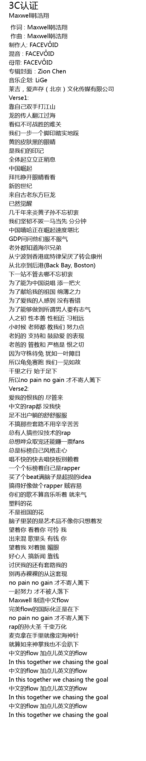 | [00:00.000] | 作词 : Maxwell韩浩翔 |
