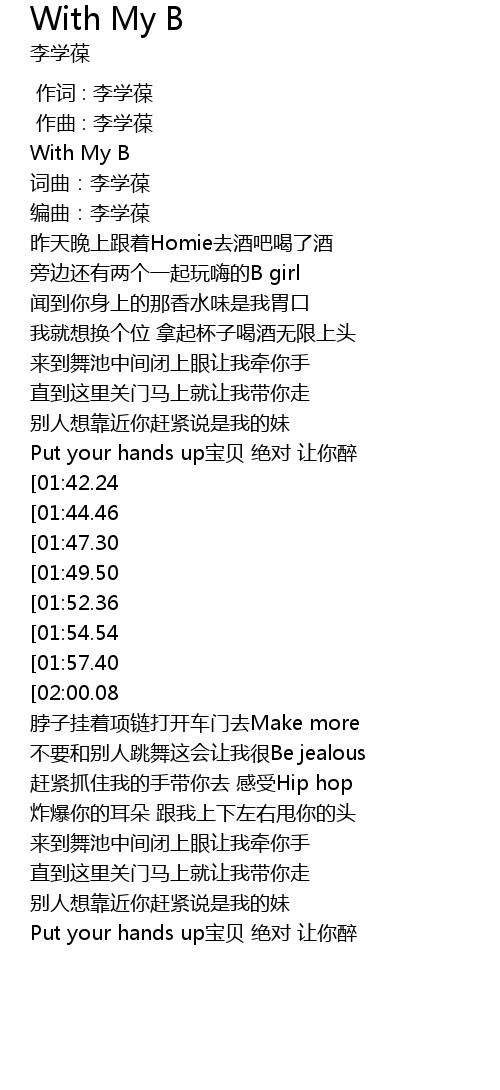 | [01:39.86] | Put your hands up宝贝 绝对 让你醉 |