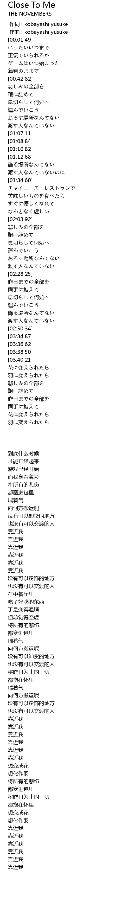 | [03:45.74][03:38.50][03:01.41][02:54.30] | close to me |