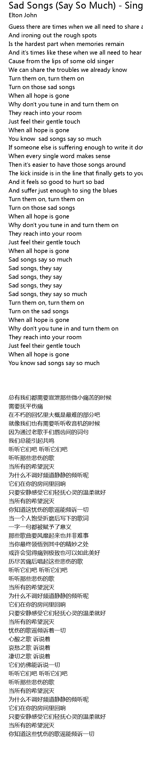 Sad songs say so much |