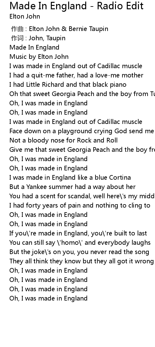 | [03:03.50] | Oh, I was made in England |