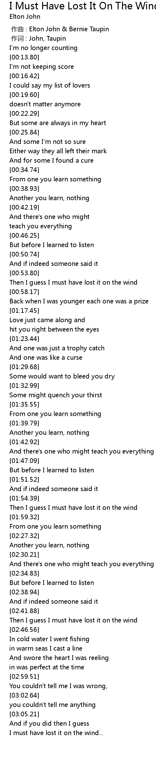 | [00:00.00] | 作曲 : Elton John & Bernie Taupin |
