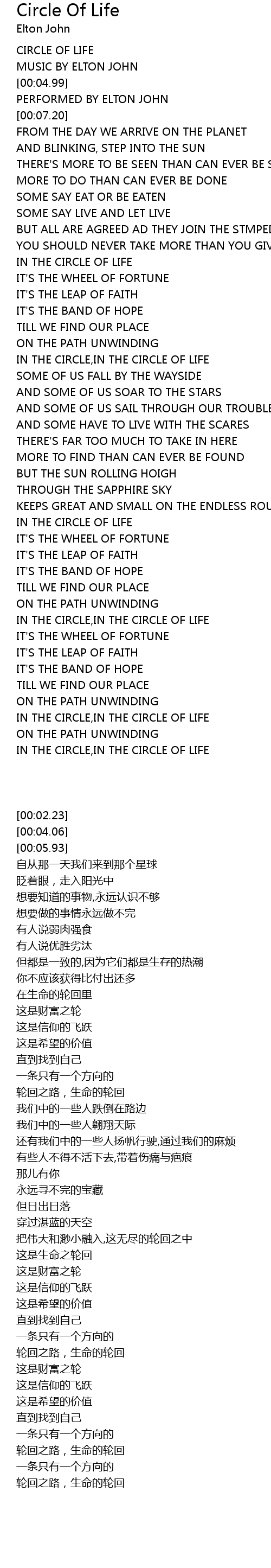 IN THE CIRCLE,IN THE CIRCLE OF LIFE |