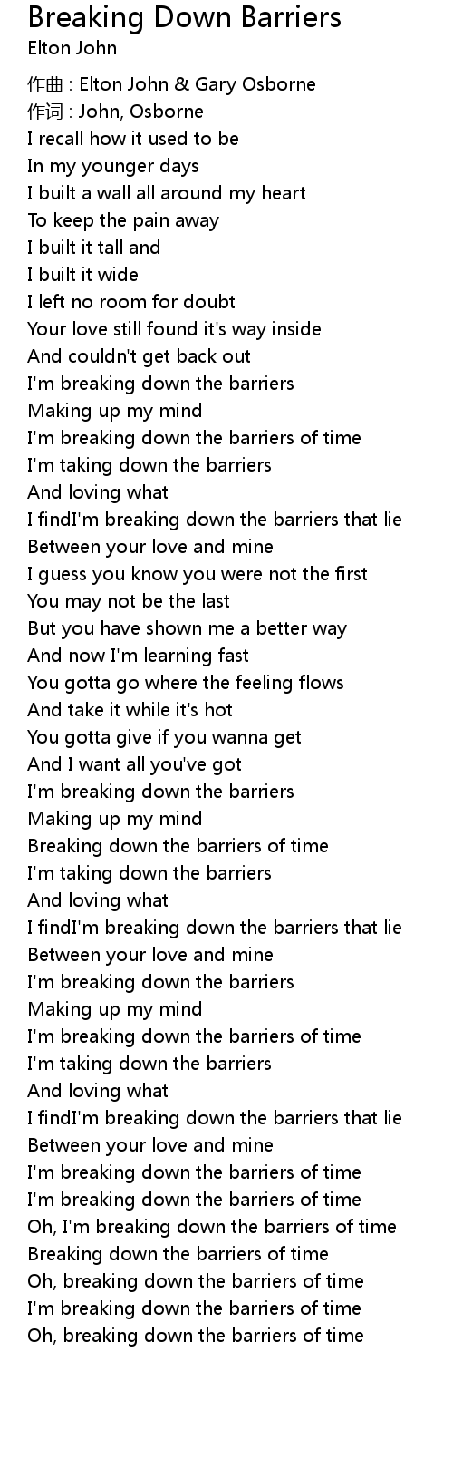 | I' m breaking down the barriers | |