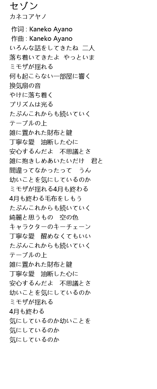 | [00:00.000] | 作词 : Kaneko Ayano |
