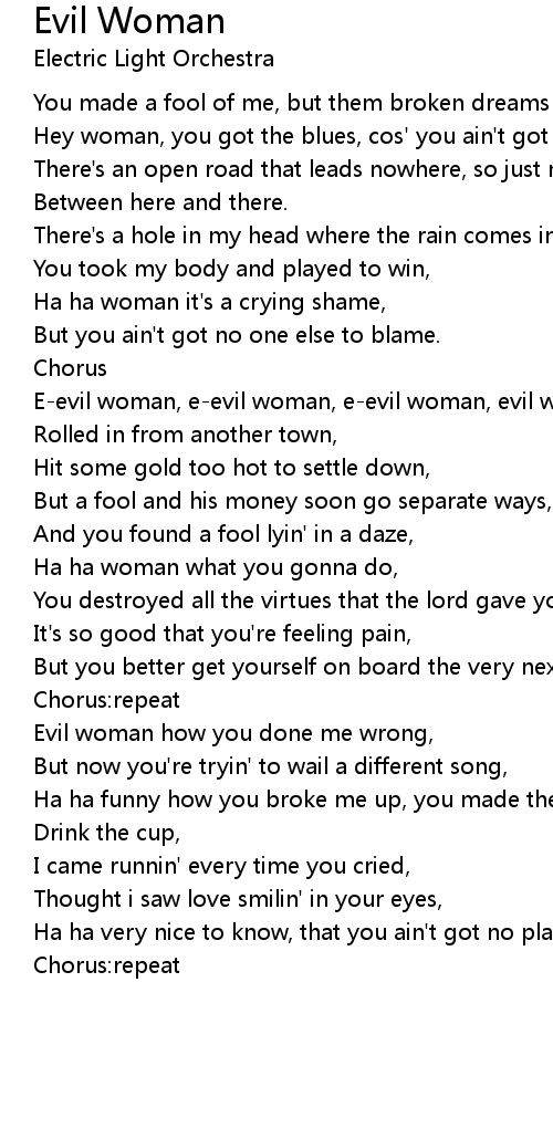 E-evil woman, e-evil woman, e-evil woman, evil woman |